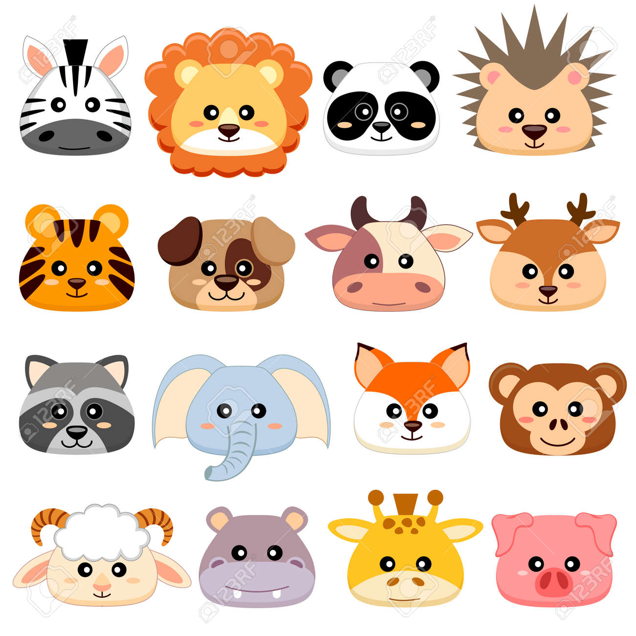 Six Cute Cartoon Animal Head Stock Vector Illustration Of