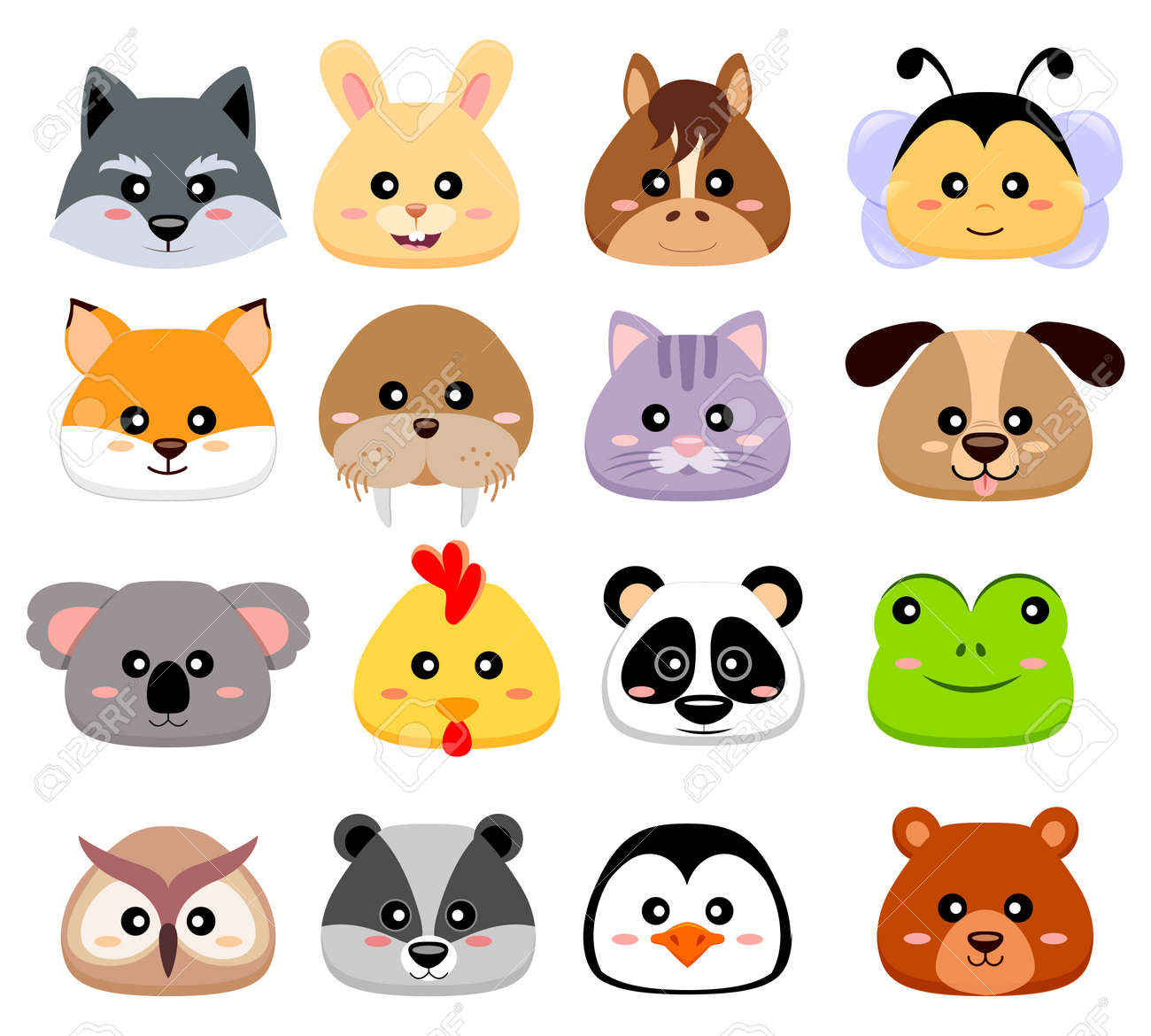 Cute Cartoon Animal Faces Stock Vector Illustration Of
